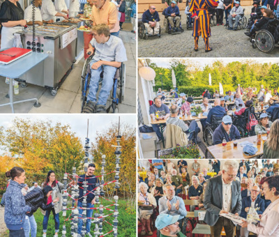Zunächst haben wir auch eine Durchmischung «drinnen». Im WBZ ist eine Kita eingemietet, wir führen selber offene Veranstaltungen durch und begrüssen externe Veranstalter und Gäste im Haus, die Gastronomie steht Dritten offen, wir haben sogenannte Servicewohnungen, die von selbstständig lebenden Mieter:innen mit Handicap bezogen werden ... Zudem ist der Haupteingang nach Reinach ausgerichtet, sodass unsere Bewohner:innen ebenerdig und auf möglichst kurzem Weg ins Dorfzentrum gelangen. Und wir bieten Ausflüge, Besuche und Ferienangebote an.