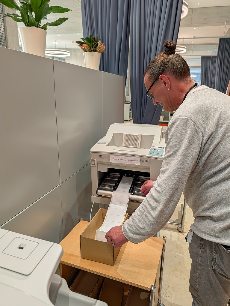 Der Etikettendruck ist ein wichtiger Bestandteil der Arbeiten der Abteilung EDV. Seit vielen Jahren bearbeitet die EDV interne sowie externe Aufträge von Firmen und Privatpersonen, bei denen Adress- und Barcode-Etiketten gedruckt werden. Diese Arbeit wird von Menschen mit körperlicher Behinderung ausgeführt und bietet ihnen eine sinnvolle, strukturierende Beschäftigung mit sichtbarem Ergebnis. Der aktuelle Etikettendrucker ist jedoch veraltet. Seit 2023 wird es durch den Hersteller nicht mehr unterstützt. Die noch verfügbaren Ressourcen an Ersatzteilen sind endlich und damit steigt das Risiko eines Ausfalls, der nicht durch Reparatur gelöst werden kann. Um die Aufträge und damit die Arbeitsplätze langfristig zu sichern und auch zukünftig qualitativ hochwertige Leistungen erbringen zu können, ist die Anschaffung eines neuen Etikettendruckers dringend notwendig. Durch die Ersatzbeschaffung sichert das WBZ vier geschützte Arbeitsplätze für Menschen mit Behinderung.